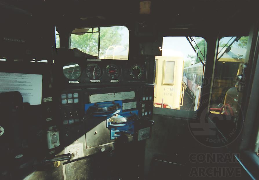 Cab interior and control stand of CR 2798/NAUG 2203 at Waterbury, CT. on June 29, 2004.