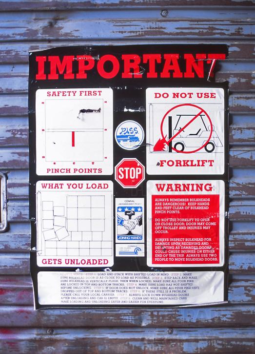 Previous Next Photo By Jeff Weaver A close-up of the warning/instruction sheet for the bulkhead inside X58 CR 361555. Equipment Type Class X58 Conrail Number 361555 Post Conrail Owner Norfolk Southern Post Conrail Number NS 361555 Year 2004 Original Date 5/3/04 Collection CRHS Conrail Photo Archive Contributions