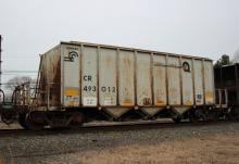 CR 493012 is seen in the consist of DCR-01 at Kirkwood, DE on 2/23/19. Car was built 12-91 by Trinity.
