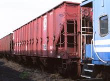 Damaged class H2 hopper CR 496027 (blt 6-94) is seen at Altoona, PA on 4/29/04. Car was deleted on 10-1-05.