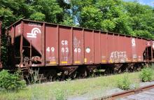CR 498340 is seen at Mount Union, PA on 6/15/18. Car was built 7-96 by HCS, deleted 6/9/17 by NS, and has been in Mount Union for a while now waiting to be scrapped by a contractor in the old East Broad Top Mount Union yard.