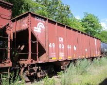 CR 498344 is seen at Mount Union, PA on 6/15/18. Car was built 8-96 by HCS, deleted 6/9/17 by NS, and has been in Mount Union for a while now waiting to be scrapped by a contractor in the old East Broad Top Mount Union yard.