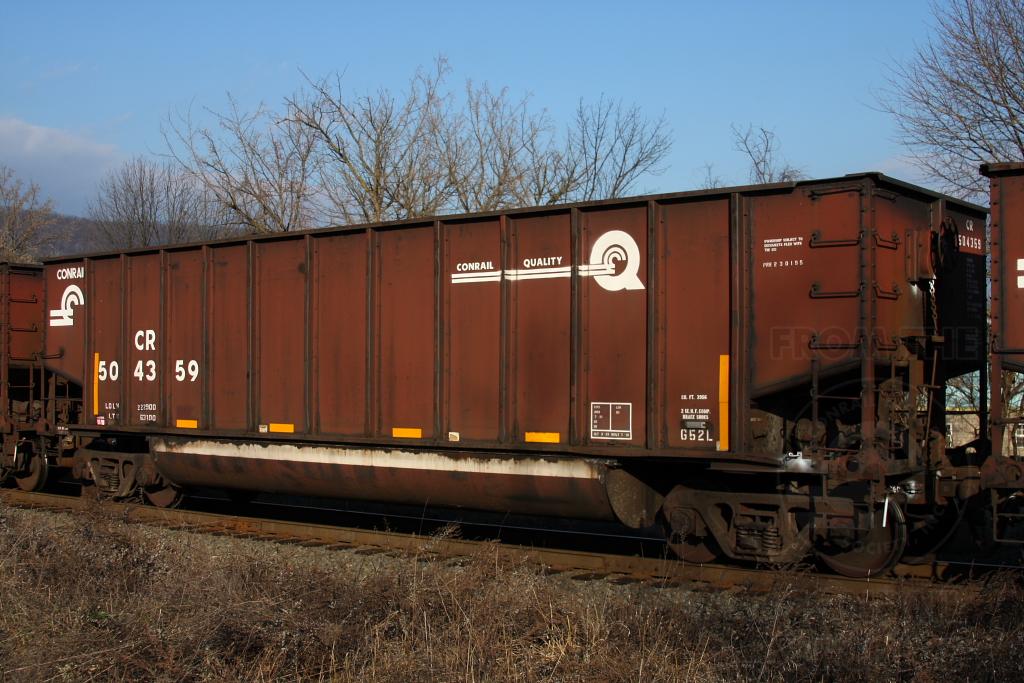 G52L Coalporter 504359 is destined for scrapping at Progress Rail in Roanoke, VA shown passing thru Marysville, PA on 12/1/09. Car was rebuilt from CR 478732/PRR 230195, a class H43C hopper.