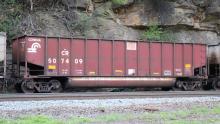 CR 507409 is seen in the consist of NS 595-10 as it rounds Horseshoe Curve in Altoona, PA on 8/10/24. Car was built 7-97(painted 7-11-97) by HCS.