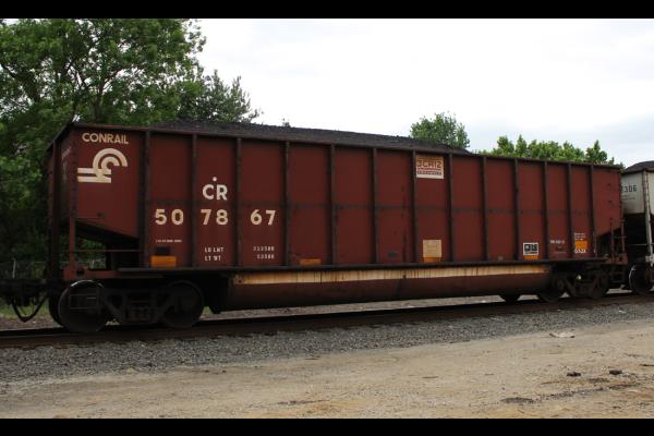 CR 507413 is seen in the consist of NS 596 at Cove, PA on 9/6/25. Car was built 7-97 (painted 7-14-97) by HCS.