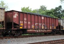 CR 507435 is seen in the consist of NS 596 at Cove, PA on 9/6/25. Car was built 7-97 (painted 7-21-97) by HCS.