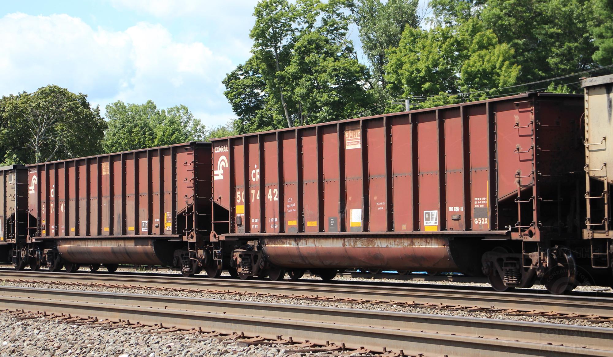 Consecutively numbered G52Xs, CR 507442 & 507443,are seen in the consist of NS Y95 at Cresson, PA on 8/10/24.
