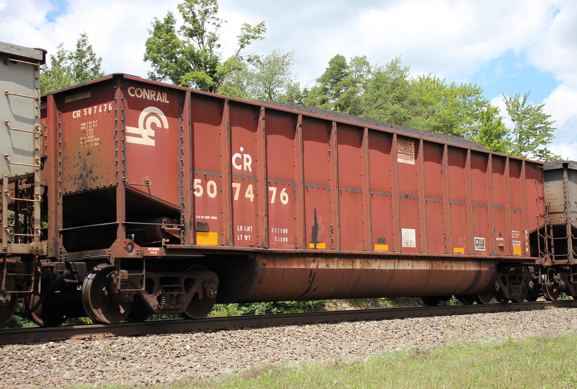 CR 507467 is seen in the consist of NS 596 at Cresson, PA on 8/10/24. Car was built 8-97 (painted 8-5-97) by HCS.