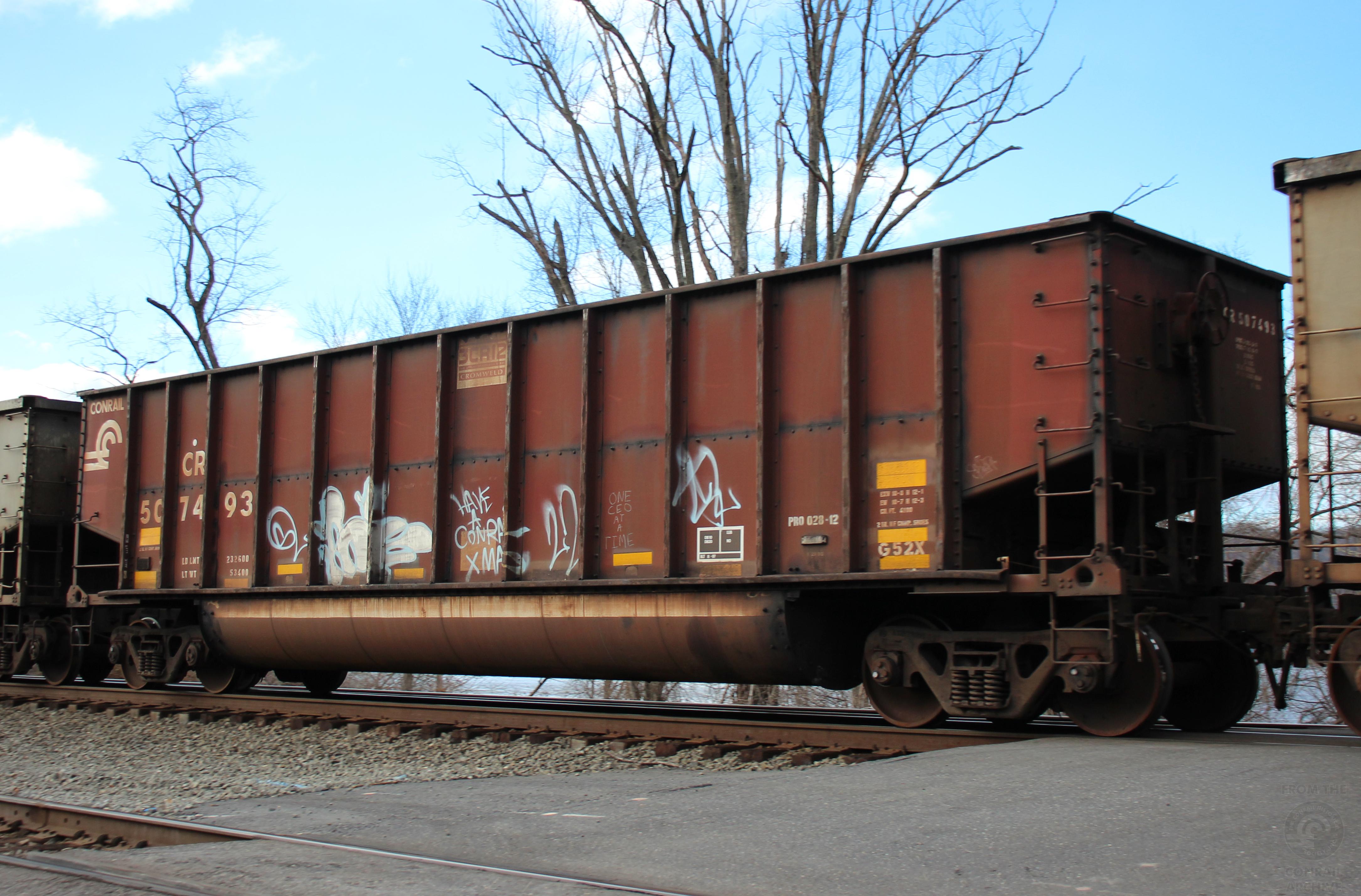 CR 507493 is seen in the consist of NS Y91at Cove, PA on 3/1/25. Car was built 8-97 (painted 8-11-97) by HCS.