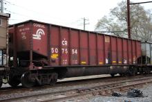 CR 507554 is seen in the consist of NS 591 at Perryville, MD on 4/8/23. Car was built 8-97 (painted 8-26-97) by HCS.