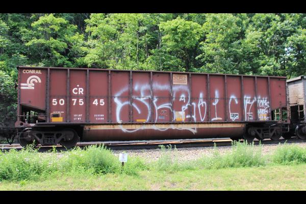 CR 507555 is seen in the consist of NS 633 at Rockville, PA on 9/6/25. Car was built 8-97 (painted 8-26-97) by HCS.