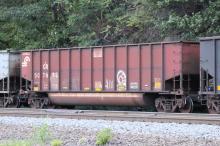 CR 507633 is seen in the consist of NS 595-10 as it rounds Horseshoe Curve in Altoona, PA on 8/10/24. Car was built 9-97(painted 9-15-97) by HCS.