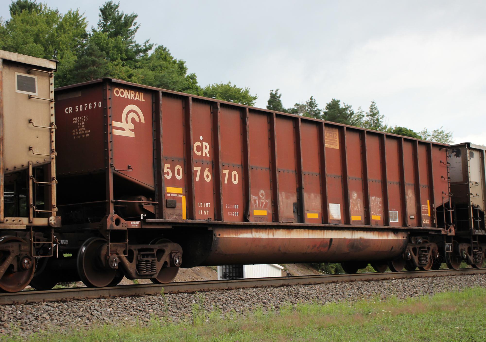 CR 507670 is seen in the consist of NS 595-09 at Cresson, PA on 8/10/24.Car was built 9-97 (painted 9-23-97) by HCS.