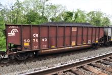 Conrail #507690. coalporter hopper. Marysville, PA spotted on May 16, 2023. Train was stopped at the old station.