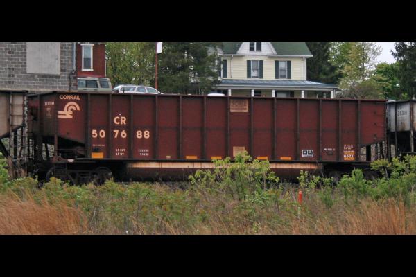 CR 507709 is seen in the consist of NS 593at Rockville, PA on 5/15/21.Car was built 10-97(painted 10-2-97) by HCS.