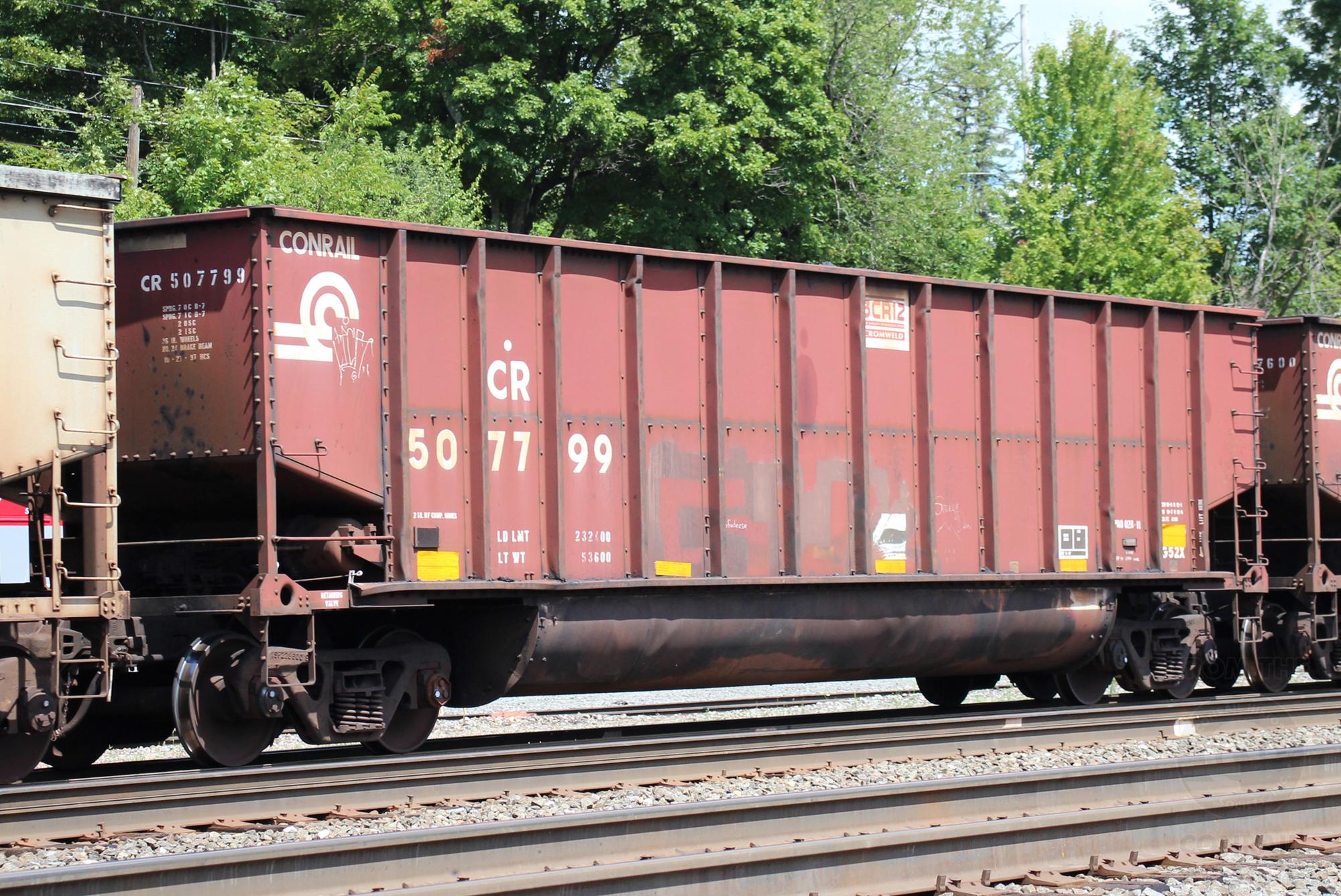 CR 507799 is seen in the consist of NS Y95 at Cresson, PA on 8/10/24.Car was built 10-97 (painted 10-27-97) by HCS.