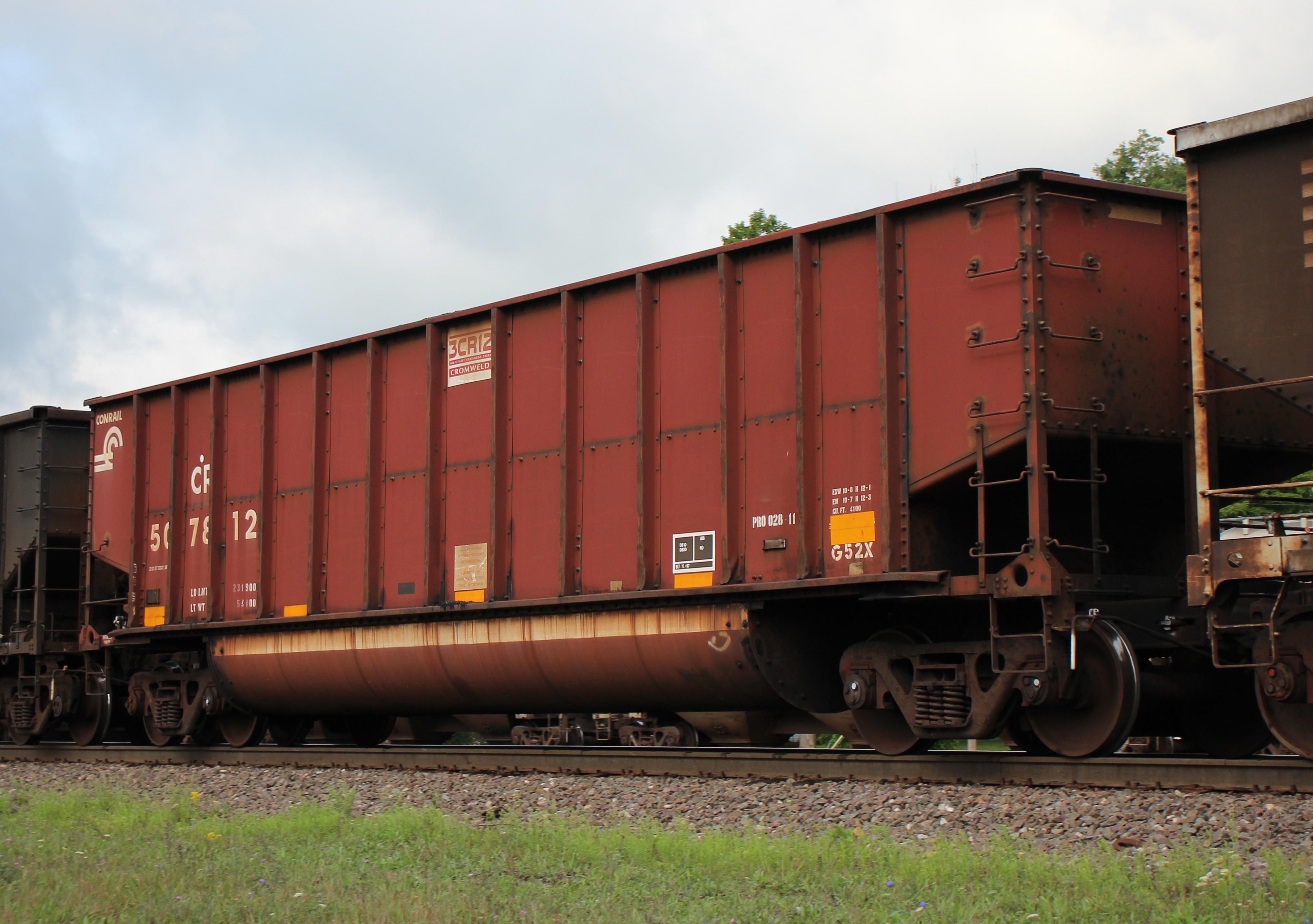 CR 507812 is seen in the consist of NS 595-09 at Cresson, PA on 8/10/24. Car was built 10-97 (painted 10-29-97) by HCS.
