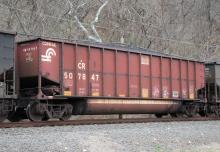 CR 507847 is seen in the consist of NS 590 at Port Deposit, MD on 3/22/25. Car was built 11-97 (painted 11-5-97) byHCS.