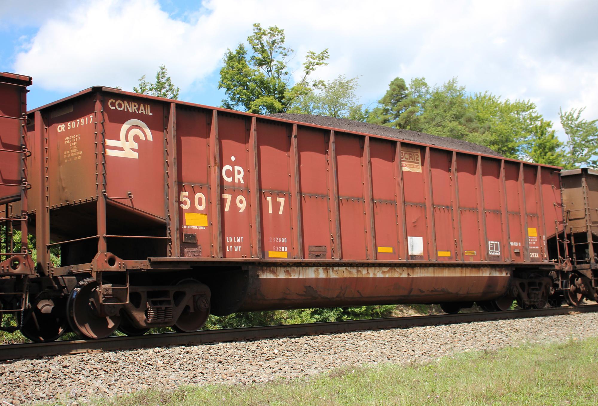 CR 507917 is seen in the consist of NS 596 at Cresson, PA on 8/10/24. Car was built 11-97 (painted 11-21-97) by HCS.