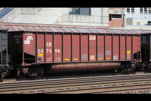 CR 507919 is seen in the consist of NS 591 at Cove, PA on 10/18/25. Car was built 11-97 (painted 11-24-97) by HCS.