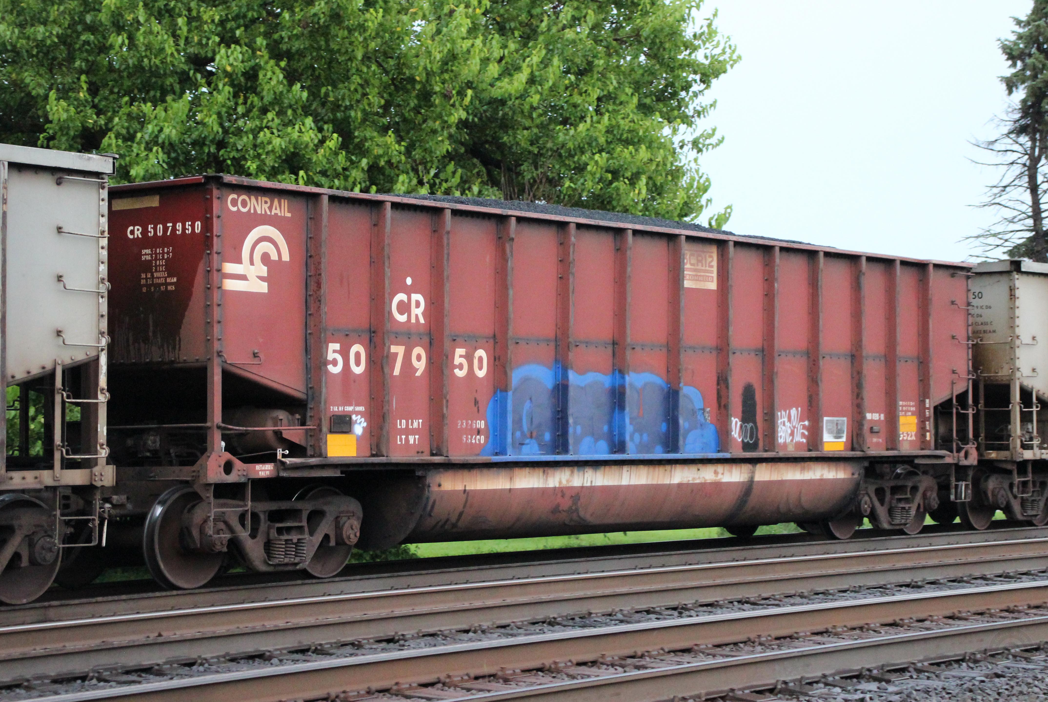 CR 507950 is seen in the consist of WB NS 866at Leetsdale, PA on 6/28/25. Car was built 12-97 (painted 12-5-97) by HCS.