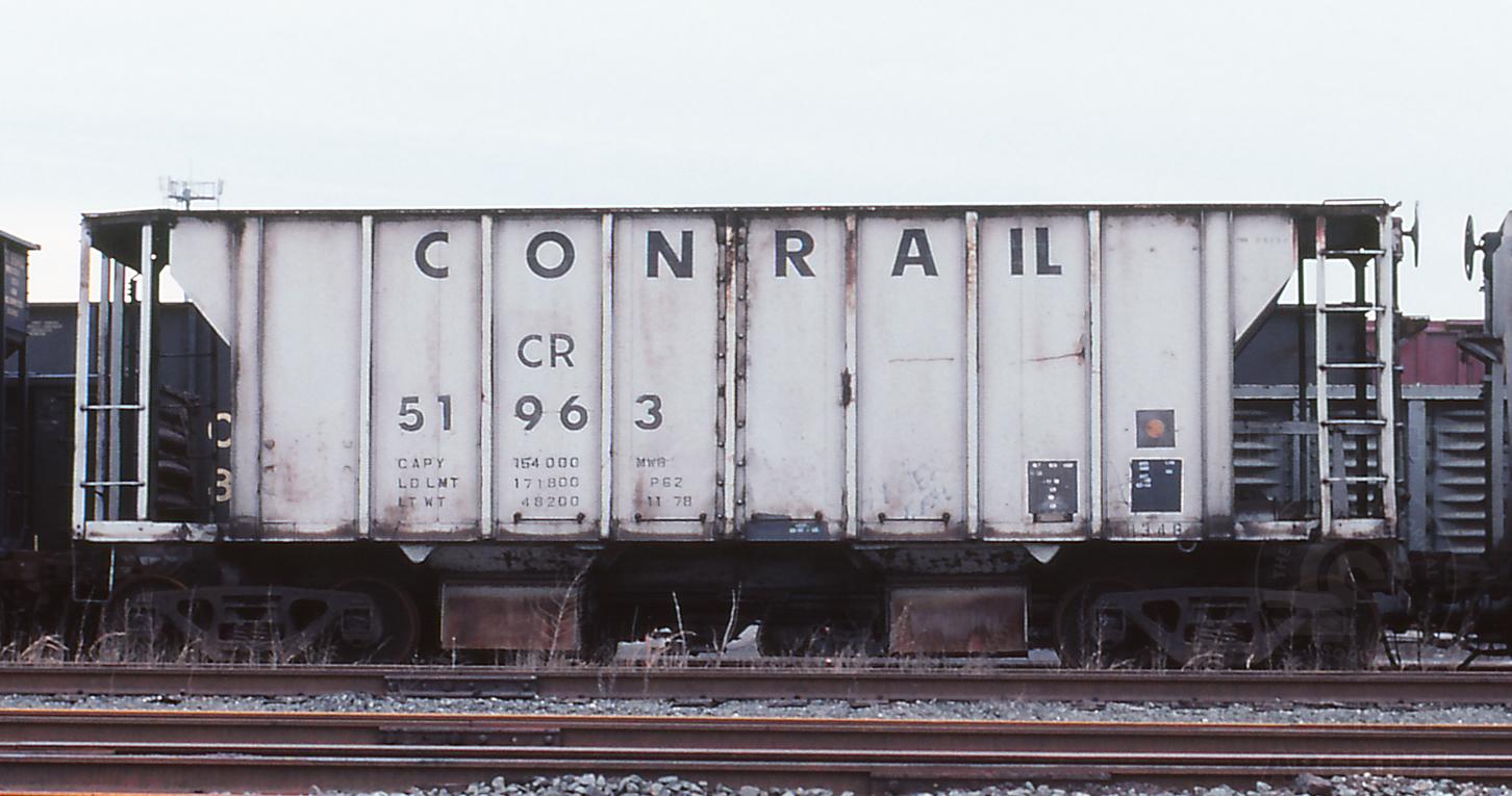 Previous Next Photo By Jeff Weaver Car is ex PRR 257327 and was built 11-55, rebuilt to ballast car 11-78. Equipment Type Class H34B Conrail Number 51963 Post Conrail Owner CSX Post Conrail Number CSX 51963 Year 1999 Original Date 12/26/99 Collection CRHS Conrail Photo Archive Contributions