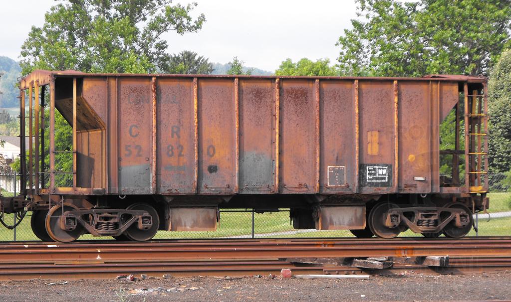 CR 52820 is seen at Hollidaysburg PA on 6/28/13. Car is ex PRR 257641, built 12-55 and converted by CR to a ballast hopper in 8-76. Car is owned by the Everett Railroad and was later repainted and renumbered to EV X311.