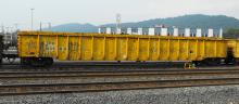 CR 55543 is seen at Cumberland MD on 8/9/12. Car is ex CR 598975/PC 598975 and was built 6-72 by Fruehauf. Car was repainted yellow CR-BL 4-89 and placed in MOW service.