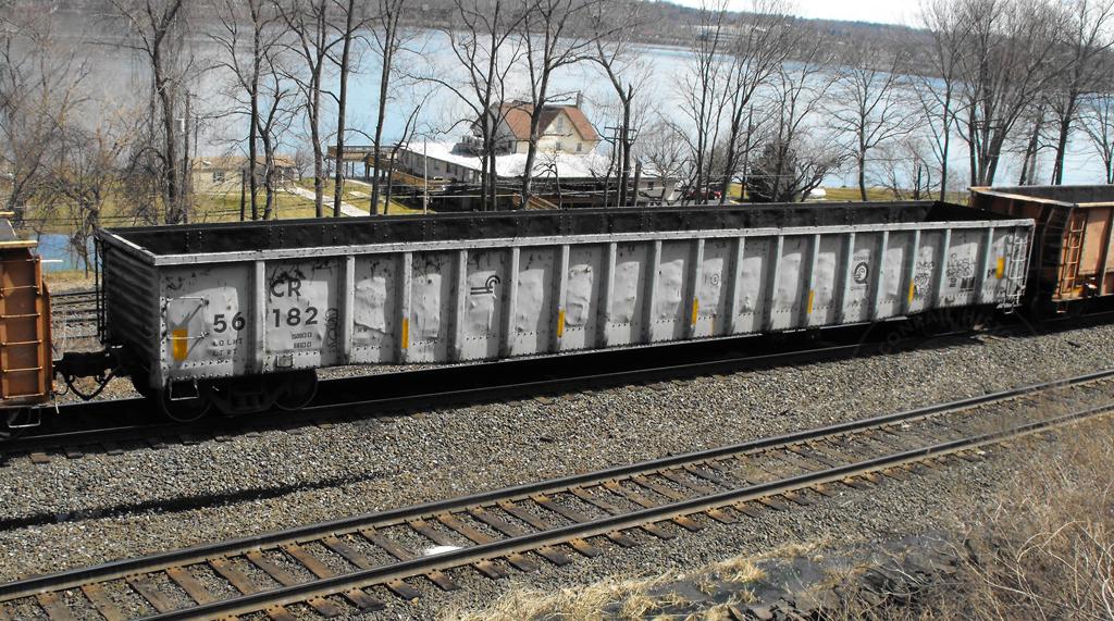 CR 56182 is seen on NS 11R at Marysville PA on 3/30/13. Car is ex PC 598133 and was built 5-68.