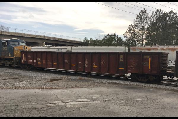 MOW gondola CR 56233 Class GE61C at Fairburn, GA on January 24, 2024.