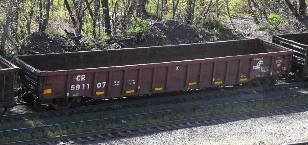 CR 581107 is seen at Enola PA on 4/7/12. Car is ex CR 565383/PC 565383. Car was renumbered to CR 581107 after the car was rebuilt with a steel floor as the car was delivered with a wood floor.