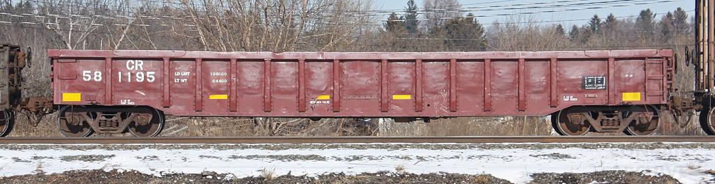 Conrail G47 581195 built in 1971 by Fruehauf. This car was recently given a "dip" CR job by NS and reclassed as a GP28. It is seen passing through on NS M1K at Macungie, PA on February 1, 2009.
