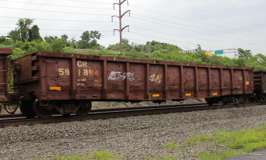 CR 581884 is seen in the consist of EB NS 61N at Wyomissing, PA on 7/19/15. Car was built 4-80 by CR and is now classed GP46 by NS.