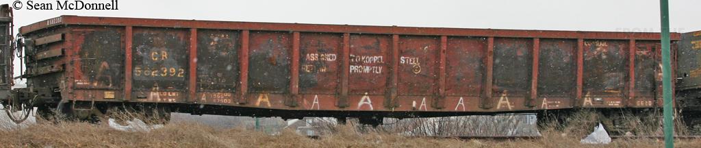 Previous Next CR gondola 582392 is seen at Homestead, PA on the former P&LE on 3/5/2007 Photo By Sean McDonnell Equipment Type Class G52D Conrail Number 582392 Post Conrail Owner Norfolk Southern Post Conrail Number NS 582392 Year 2007 Original Date 3/5/07 Collection CRHS Conrail Photo Archive Contributions