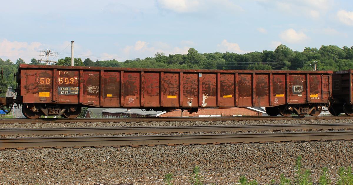 CR 585037 is seen in the consist of EB NS 11X at Cresson, PA on 6/12/15. Car is ex DTI 9735.