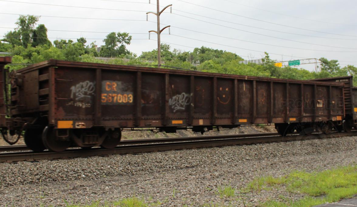 CR 587003 is seen in the consist of EB NS 61N at Wyomissing, PA on 7/19/15. Car is ex CR 565476/EL 44336 and was built 5-71.
