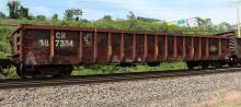 CR 587384 is seen in the consist of EB NS 61Z at Wyomissing, PA on 8/16/14. Car is ex CR 564321/PC 564321/NYC 720321.