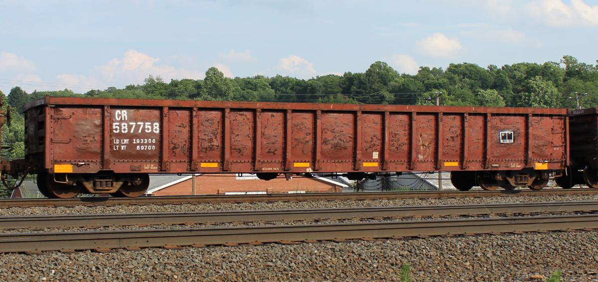 CR 587758 is seen in the consist of EB NS 11X at Cresson, PA on 6/12/15. Car is ex CR 580669/PC 580669, built 1-72 and is now classed GP57 by NS.