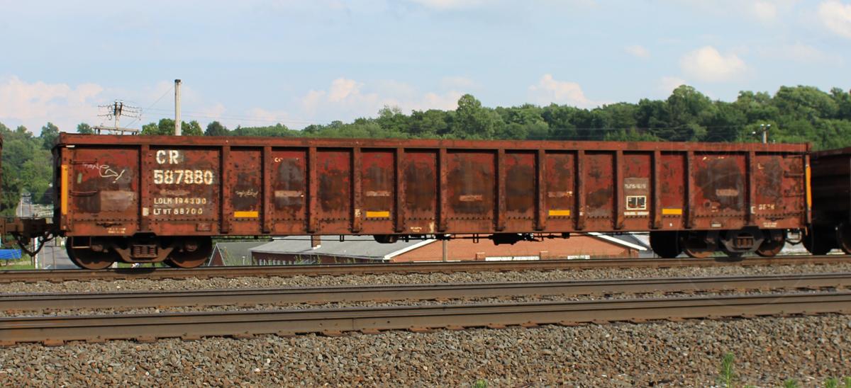 CR 587880 is seen in the consist of EB NS 11X at Cresson, PA on 6/12/15. Car is ex CR 580200/PC 580200 and was built 11-71.