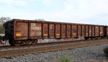 CR 587943 is seen at Westville, NJ on 4/20/15. Car is ex CR 564967/PC 564967, built 2-72 and is now classed GP57 by NS.