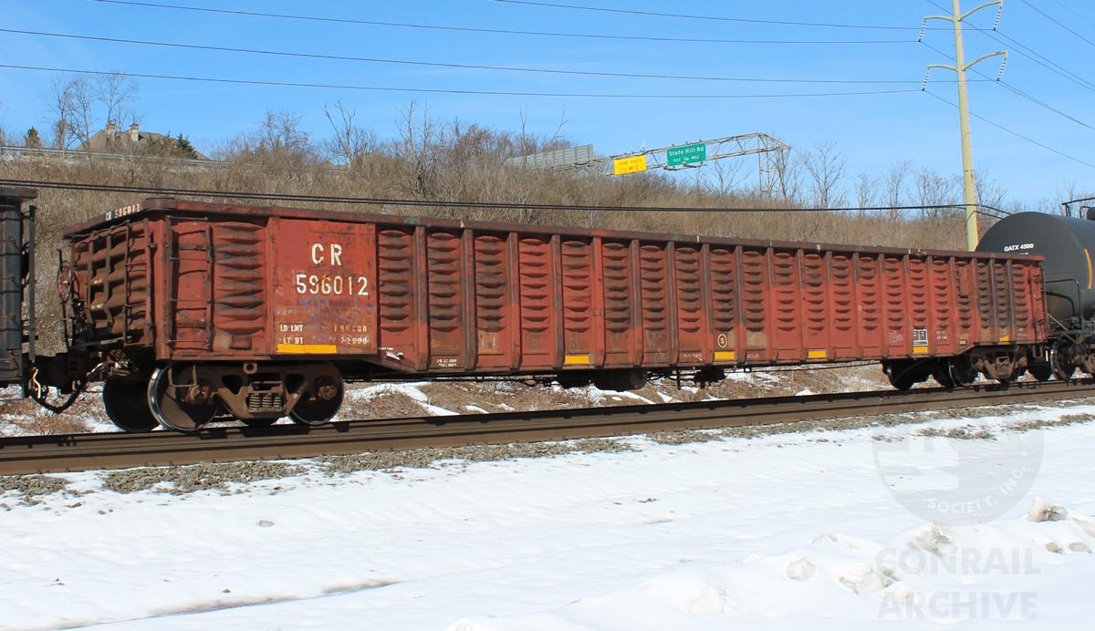 CR 596012 is seen in the consist of NS 19G at Wyomissing, PA on 2/24/15. Car is ex MP 650250 and was built 1-75 by Thrall.