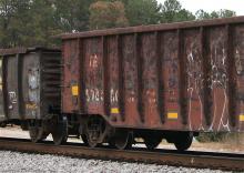 Detail of CR 598680 as the G46 class gondola rolled through Peachtree City, GA on November 13, 2016.
