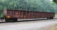 CR 598704 is seen at Hancock, WV on 6/11/15. Car is ex PC 598704, built 5-72 and was painted CR-BL 7-81.