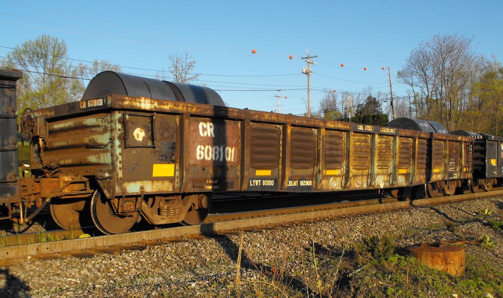 CR 608101 is seen in PC green on 33A at Wormleysburg PA on 4/7/12. Car is ex PC 795004 and was built 10-69
