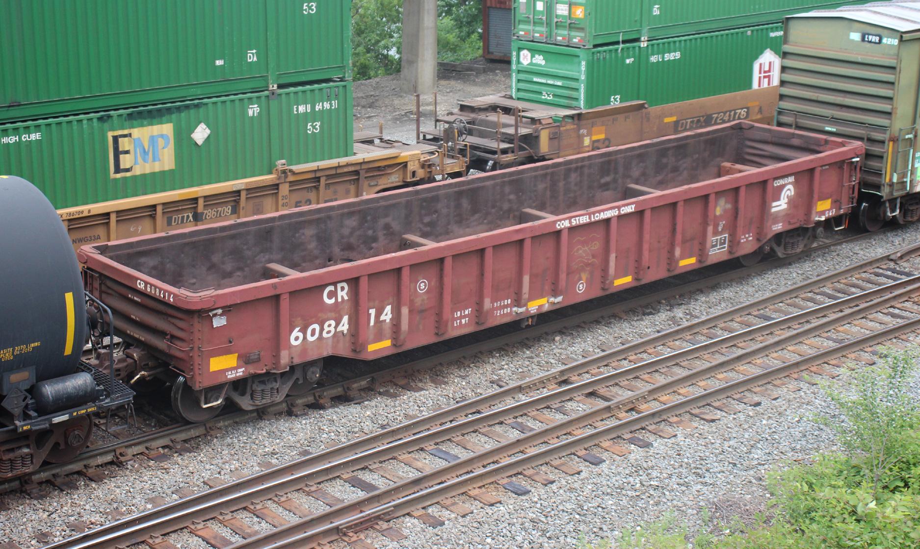 CR 608414 is seen in the consist of NS 16G at Baden (East Conway), PA on 7/9/20. Car is ex CR 581048/PC 581048 and was built 3-72 by Fruehauf. Photo by Chris Carangi.