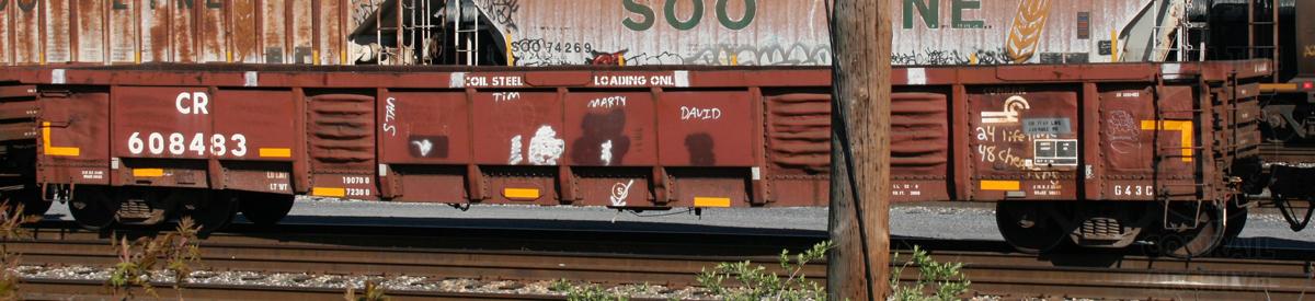 Previous Next Car is ex PC and was built 3-70. Photo By Donnie Lee Equipment Type Class G43C Conrail Number 608483 Post Conrail Owner Norfolk Southern Post Conrail Number NS 608483 Year 2012 Original Date 4/7/12 Collection CRHS Conrail Photo Archive Contributions