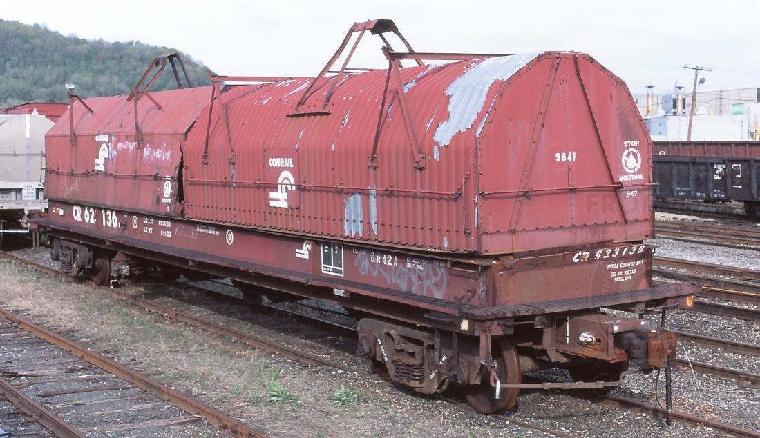 Car is ex CR 602028/RDG 99140 and was built 4-68, painted 4-97 at HCS. Note the damage to the end of the car as well as the far hood.