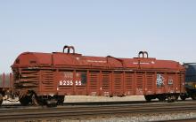Former Conrail coil gon, now "NYC" for CSX, is at Willard, Ohio. Both covers retain their CR logos, and both say "remove this cover first"!