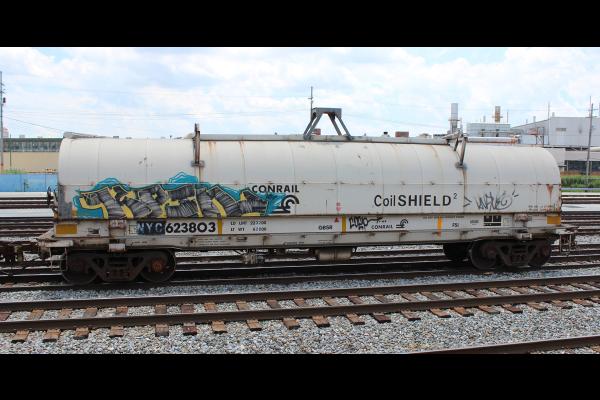 CR 623864is seen in the consist of NS C28at Baden (East Conway), PA on 6/28/25. Car was built 7-97 by Thrall as part of Job 413.