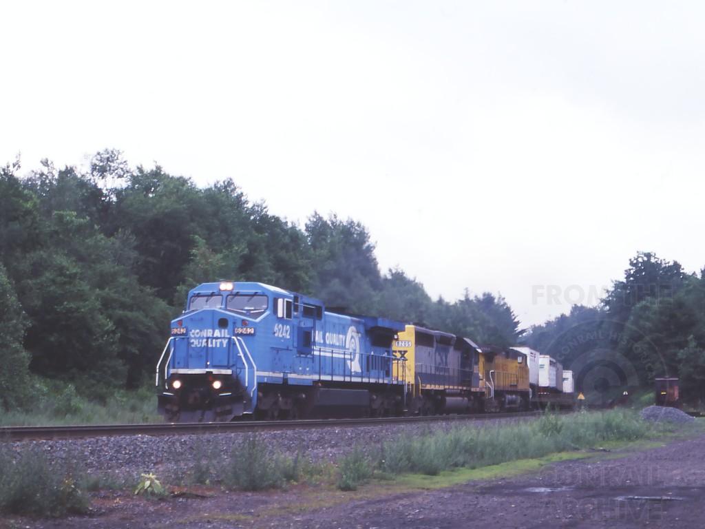 C40-8W 6242 on TV9 at Washington depot, MA. on July 2, 1999. UP 9564 in the trail.